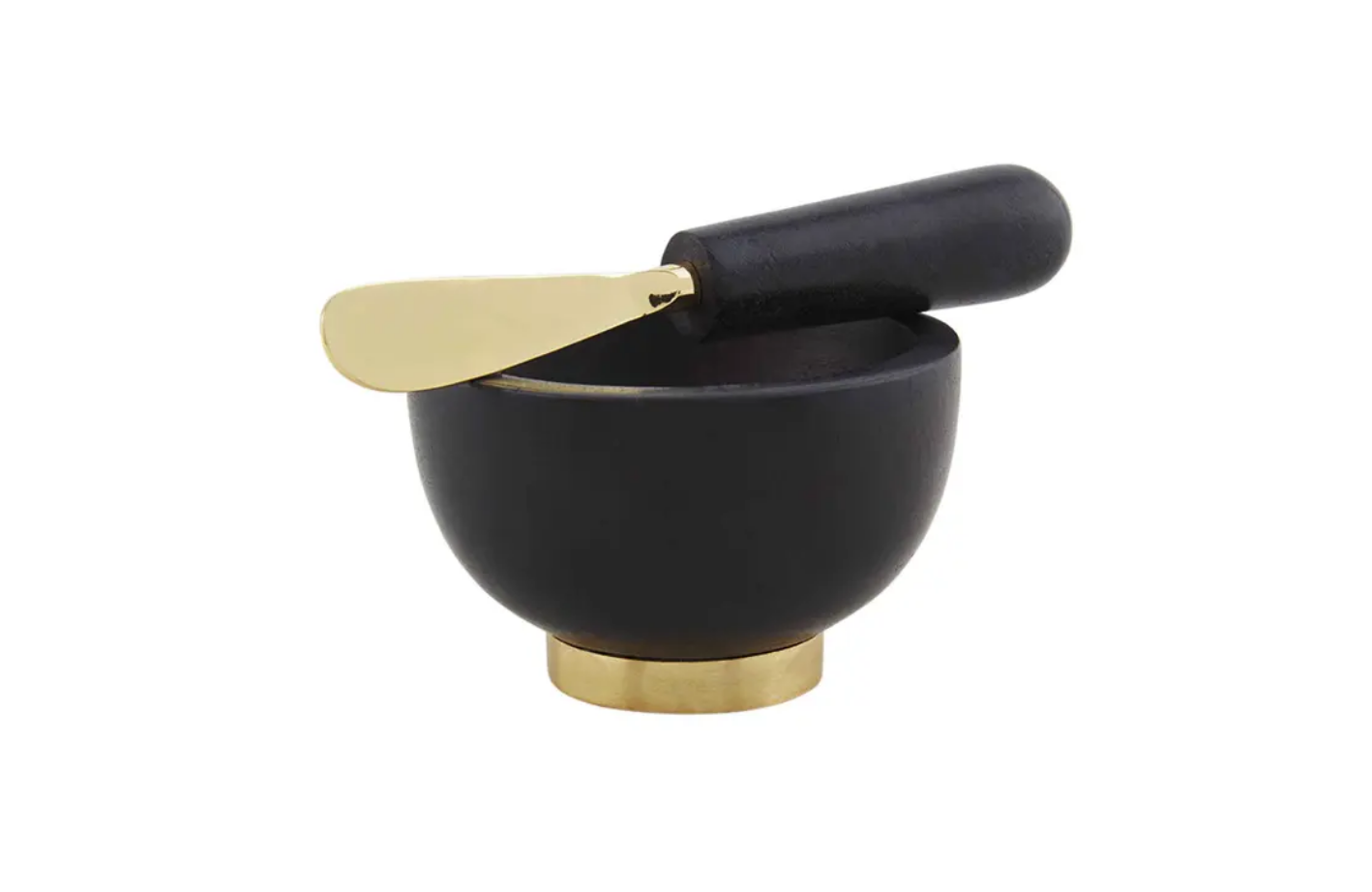 Out with the old and in with the new marble dip set. The two piece set comes with a marble bowl. The marble bowl features a beautiful brass finished stainless steel pedestal. The bowl also comes with a coordinating spreader that features the same coloring.