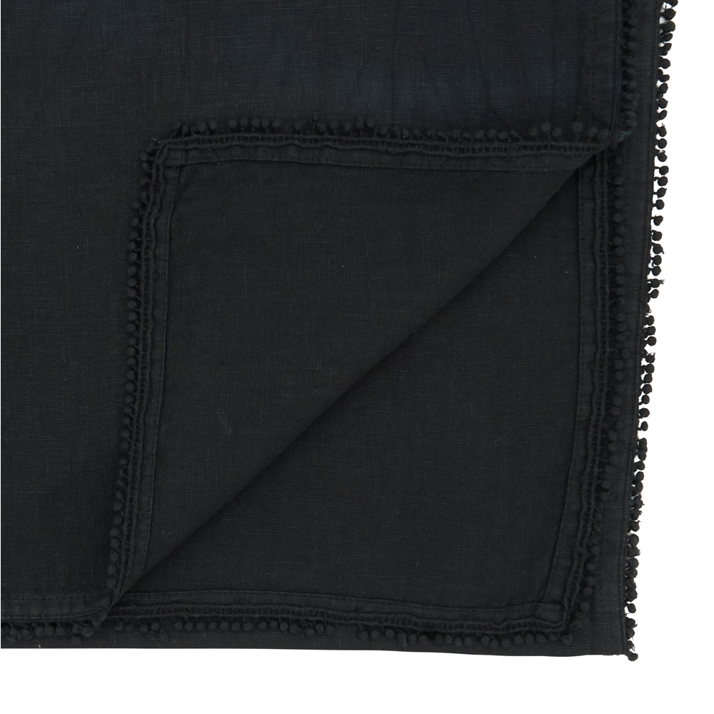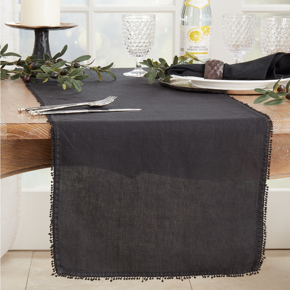 Add a pop of fun to your table with this runner that features a playful pompom edge, this table runner is perfect for adding a touch of whimsy to any dining experience. Bring some quirk and humor to your next gathering.
