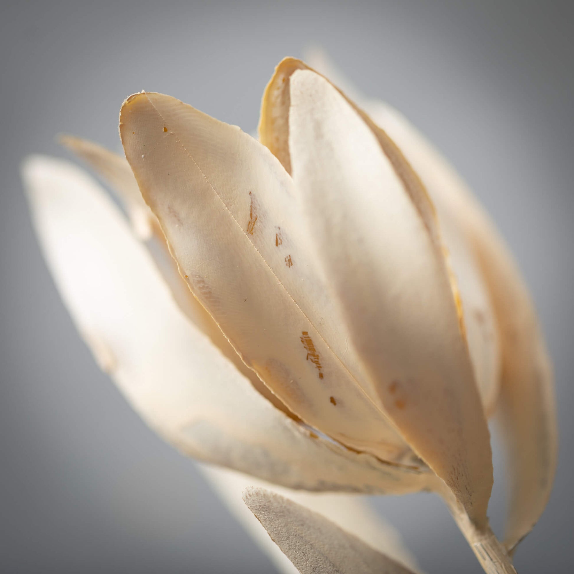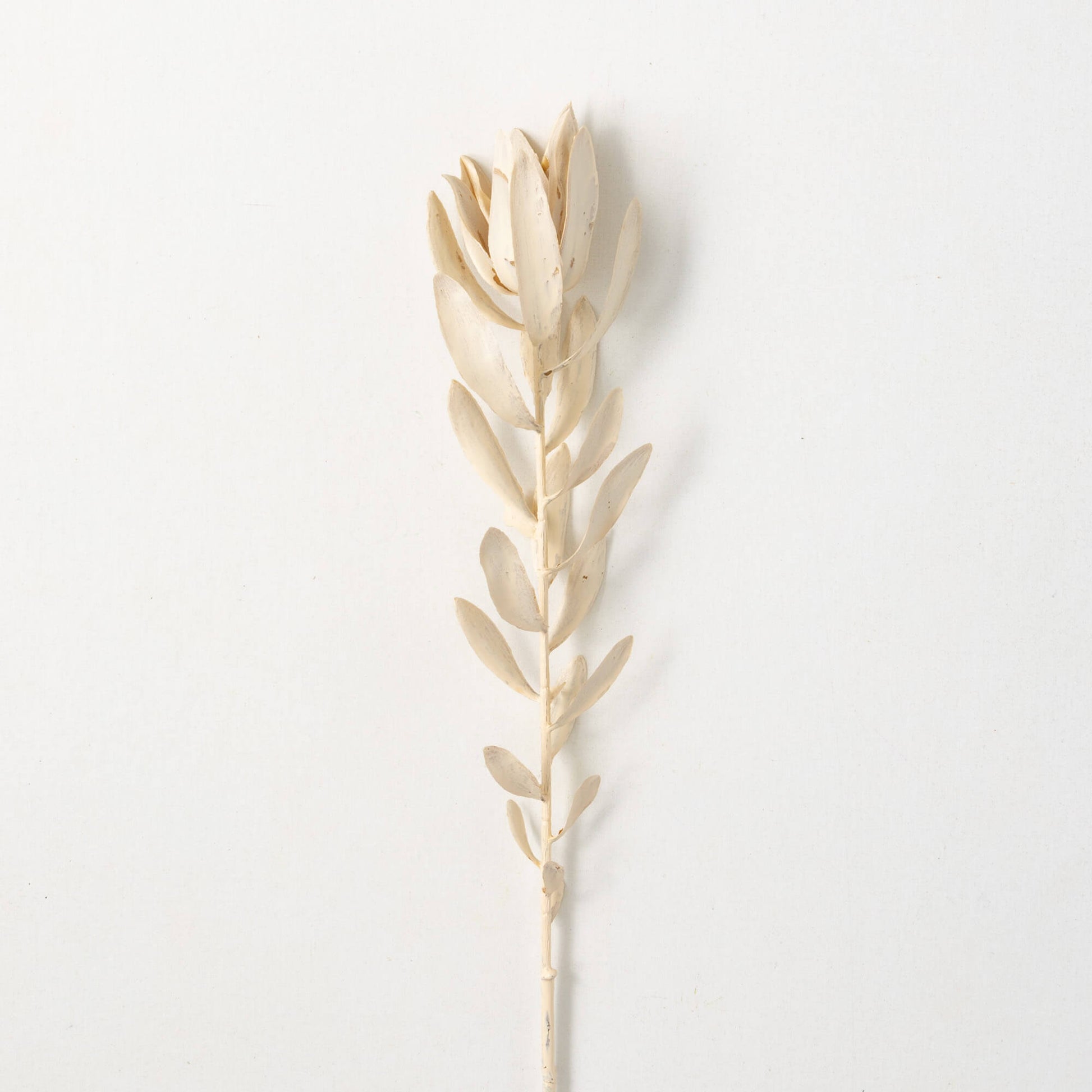 Bursting with intensity, the echinate leafy accents and crown full of petals lend a fresh modern style to any creation. Eye-catching subtle dusty cream hues with a high-quality construction, come together to form this unique version of a stunning tropical stem.