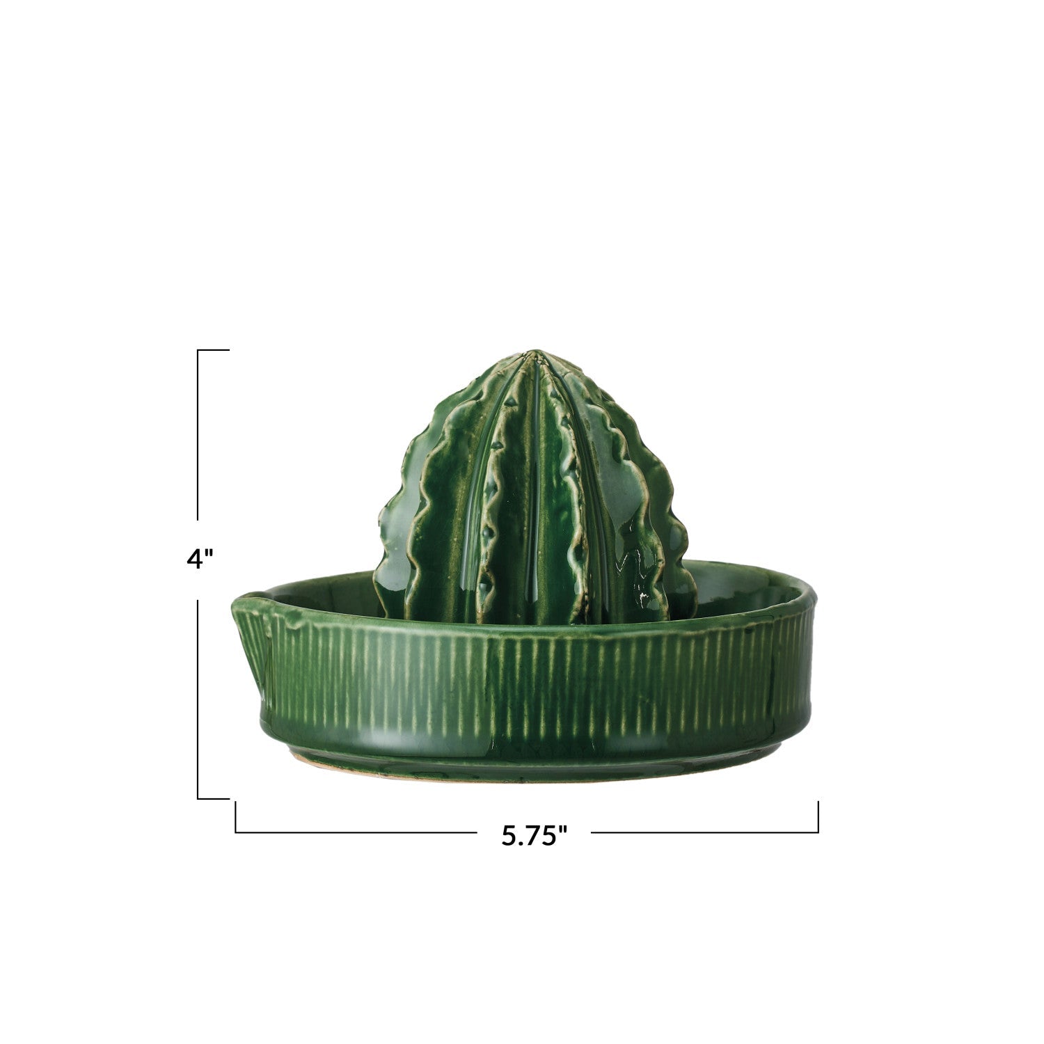 This charming Cactus-Shaped Juicer is expertly crafted from green stoneware, offering both functionality and style. Whether for squeezing lemons for a refreshing drink or adding a splash of citrus to your margarita, this juicer is sure to become a staple in the kitchen.