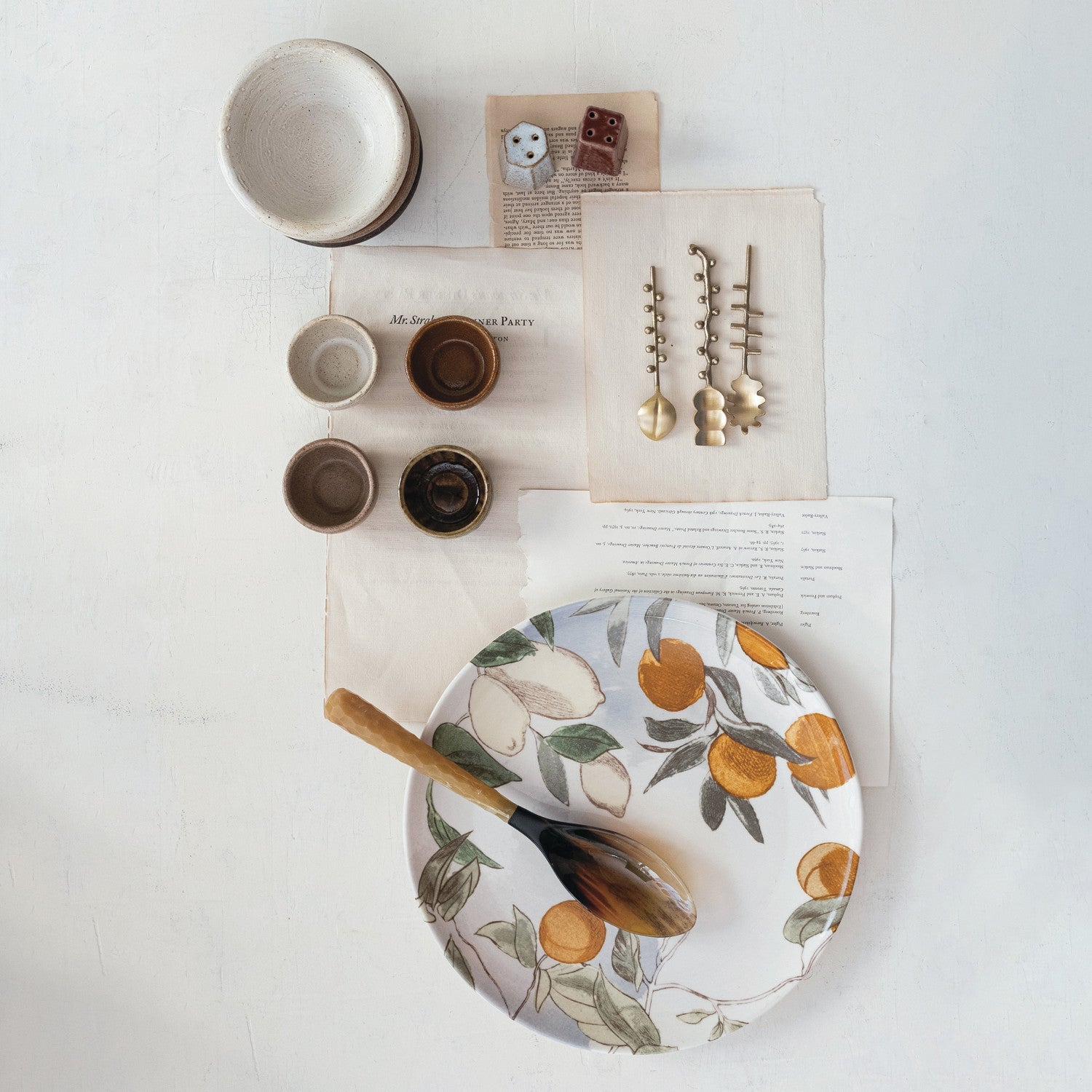 Add a touch of sophistication to your dinner table with our vintage inspired stoneware platter featuring a vintage fruit design in muted tones. Perfect for bringing a pop of color to any meal. Don't miss out on this one-of-a-kind piece!